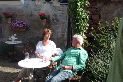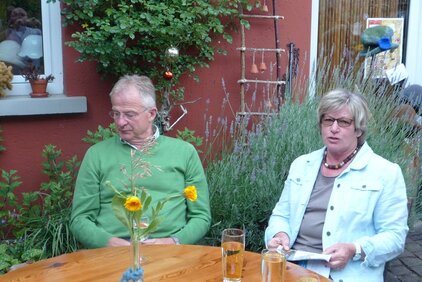Alles passte an diesem herrlichen Sonntag für die rund 50 Personen umfassende Gruppe von Mitgliedern und Freunden des VVV in der alten, sehr originell eingerichteten Scheune von Mechthild und Wilfried Smeisser: Tolles Wetter, das besondere Ambiente in Hof und (Scheunen)-Theater, Speisen und Getränke und insbesondere natürlich die beeindruckende Vorstellung der beiden Künstlerinnen.