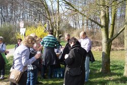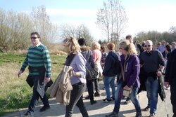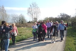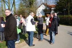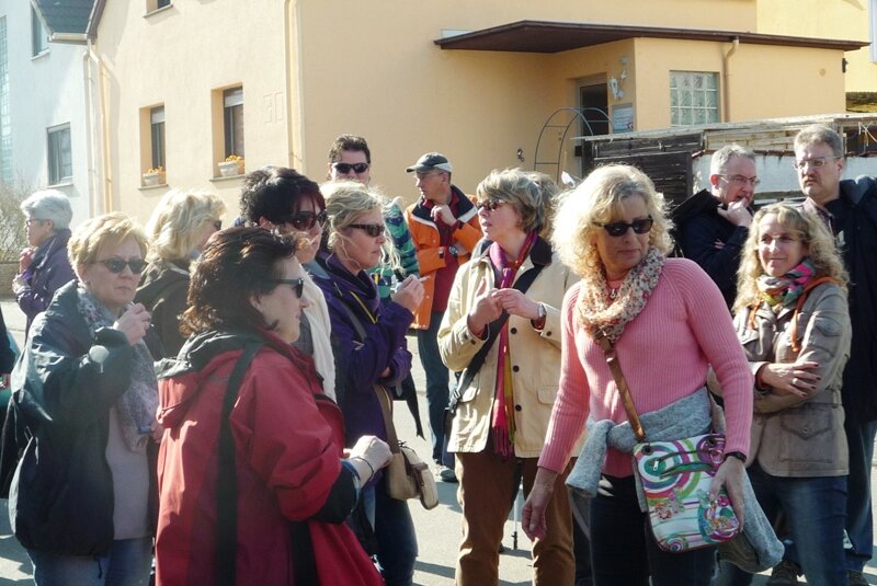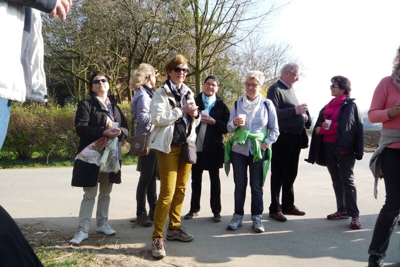 März 2014 (rom). Seit etlichen Jahren lädt der VVV Helferinnen und Helfer beim Weihnachtsmarkt und deren Partner im Frühjahr zu einer kleinen Wanderung ein, an deren Endpunkt zu einem gemeinsamen Essen eingekehrt wird. Ziel des diesjährigen Rundgangs war das Bürgerhaus in Wolfskehlen. Um die Tour etwas zu verlängern, wählten die Organisatorinnen Conni Ludwig und Ilona Wührer ausgehend vom Treffpunkt „Bürgertreff“ in der Weidgasse eine Strecke vorbei am Brunnenhof über die Römerbrücke zum Burghof der Familie Brodhecker. Bei der ausgedehnten Zwischenrast am Reiterhof wurden die Teilnehmer mit Sekt und anderen Getränken bewirtet. Im Gegensatz zum Vorjahr war der Wettergott der Gruppe diesmal wohl gesonnen und bescherte reichlich Sonnenschein.