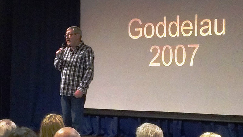 In seiner kurzen Ansprache begrüßte Dieter Knebel, 1. Vorsitzender des VVV, als besonderen Ehrengast Ludwig Nösinger, der nicht nur zum Filmteam im Jahre 1957 gehörte, sondern auch drei Jahre zuvor als Gründungsmitglied den VVV zusammen mit einigen anderen Goddelauer Bürgern aus der Taufe gehoben hatte.