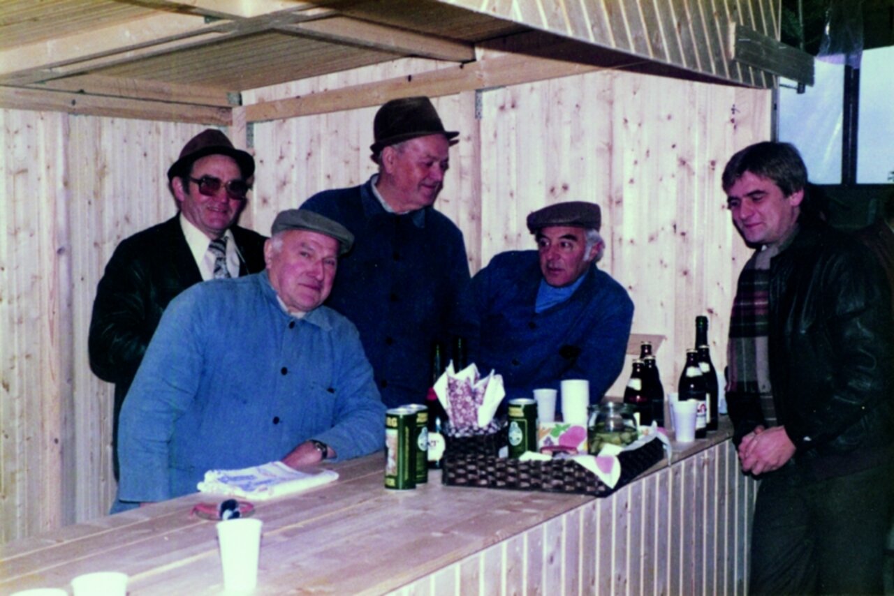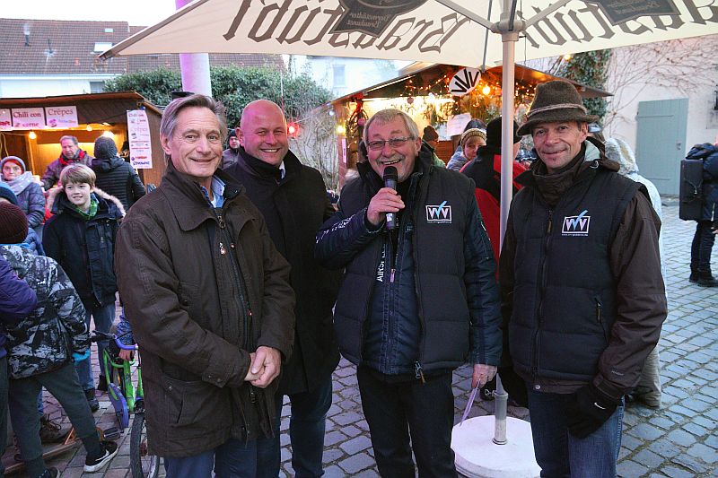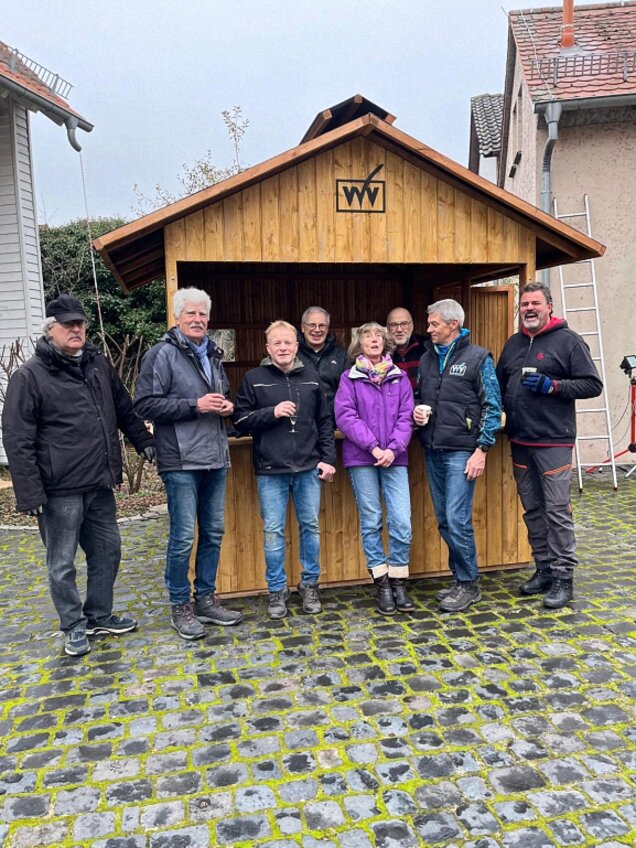 In aller Eile zimmerten 1982 die Spezialisten für Holzarbeiten im Verein, Wilhelm Altendorf, Michael Hill, Georg Kraft, Philipp Schaffner und Hans Weinberger insgesamt fünf Hütten in den Betriebsräumen der Schreinerei Schaffner für den ersten Weihnachtsmarkt des VVV zusammen. Diese ersten Verkaufsstände überdauerten übrigens bis heute alle manchmal doch sehr unsanften Auf- und Abbauten.
