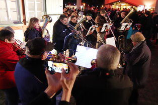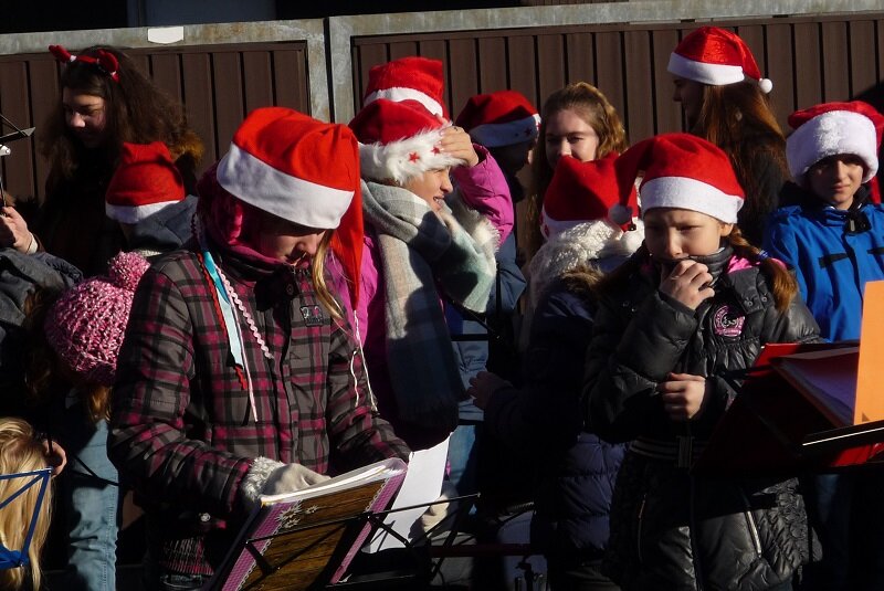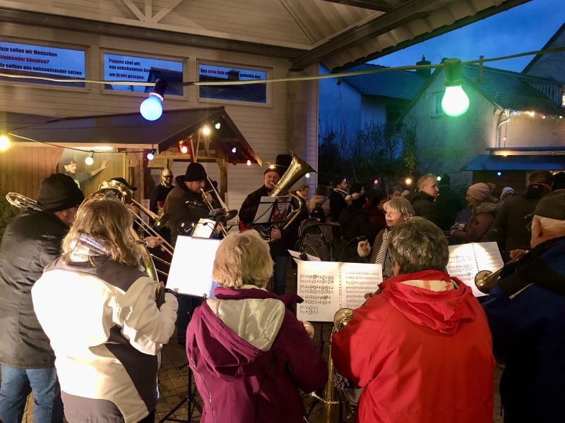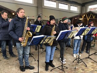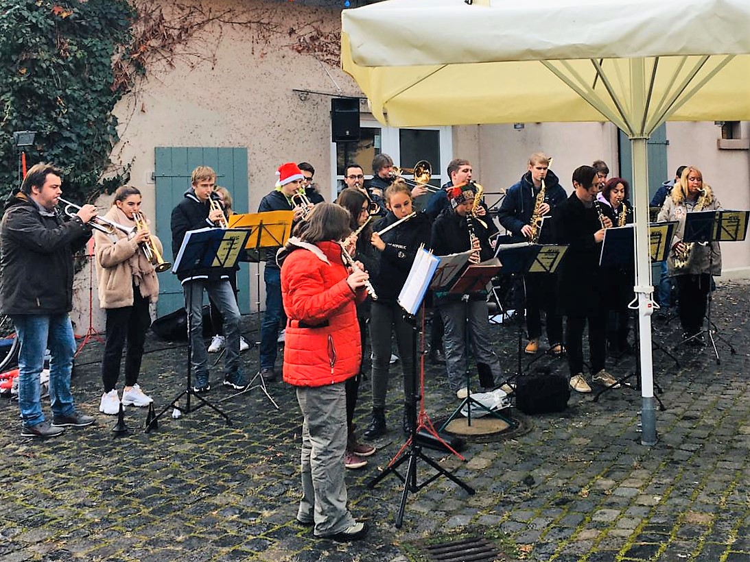In der Zeit bis zum ersehnten Erscheinen des Nikolauses wurden die Gäste von der Bläserklasse der MNS, dem Schülerblasorchester des Musikvereins Goddelau und dem Stockstädter Posaunenchor unterhalten.