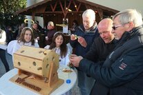 Bereits am Freitag traf sich eine große Gruppe von Helfern, um die 10 Holzhütten aufzubauen. Diese wurden am Samstagmorgen mit viel Liebe zum Detail festlich geschmückt, bevor Werner Amend um 13:00 Uhr den Markt eröffnete. Auch in diesem Jahr konnten an etlichen Ständen Geschenke oder auch Leckereien für den eigenen Bedarf erstanden werden.