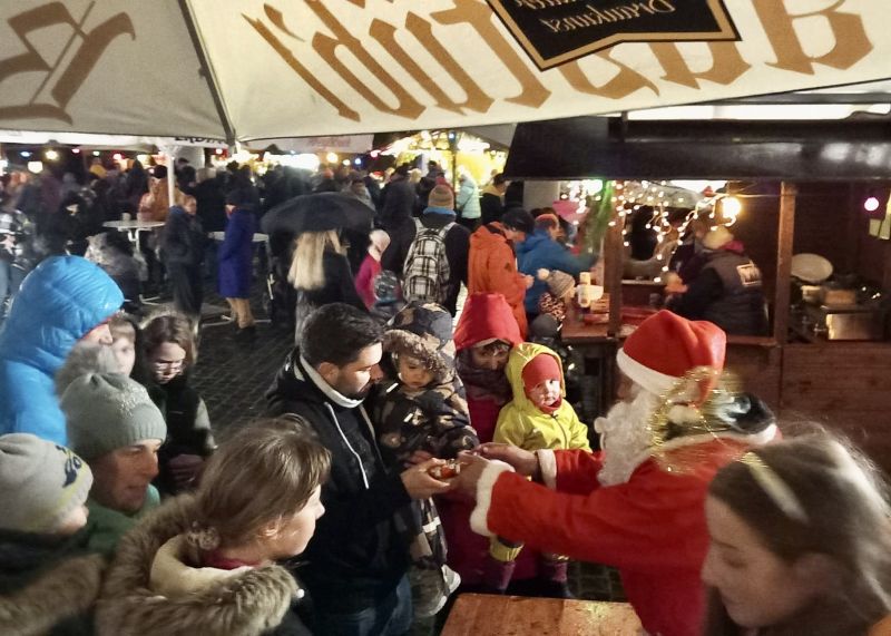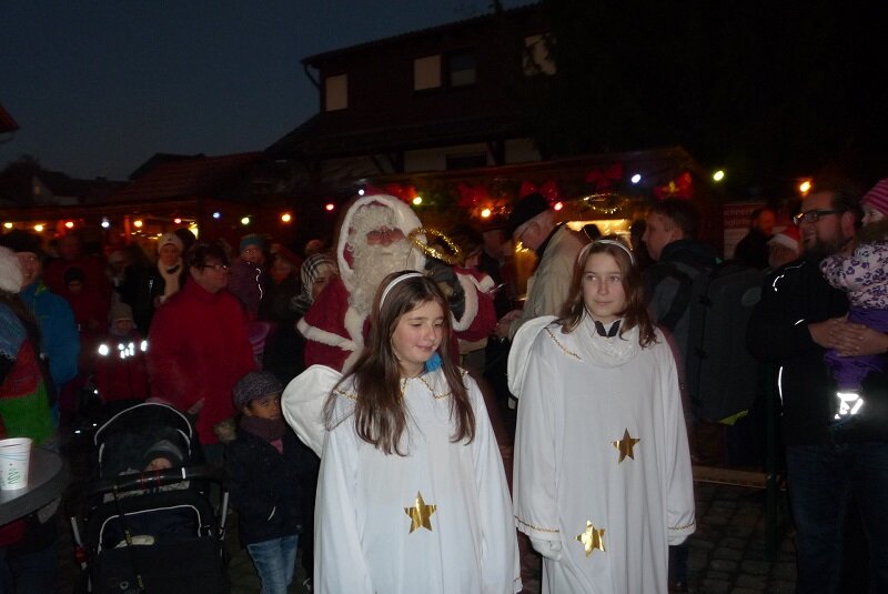 Dank der Hilfe der beiden Weihnachtsengel Johanna und Althea konnte am Ende jedes Kind mit den Geschenken in der Hand den Abend beschließen. Die Erwachsenen feierten noch weiter, denn schließlich gehört auch die Geselligkeit zu einem der Anziehungspunkte eines Weihnachtsmarktes.