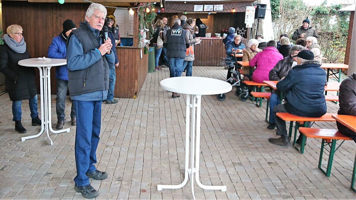 Da alle für den reibungslosen Verlauf des Weihnachtsmarktes relevanten Punkte rechtzeitig erledigt werden konnten, begrüßte pünktlich um 13 Uhr Werner Amend die ersten Besucher, die sich an den Verkaufsständen für Glühwein, Bratwurst und Pommes mit Speisen und Getränken versorgen konnten. Für Amend war dies übrigens eine Premiere, da er erst im Frühjahr 2019 das Amt des 1. Vorsitzenden beim VVV übernommen hatte.