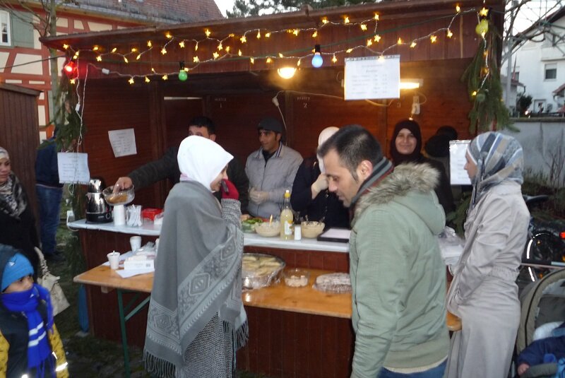 Die Flüchtlingshilfe Riedstadt hatte mit Falafel und verschiedenen Soßen einen Beitrag aus orientalischen Regionen mitgebracht. Schon beim Aufbau der Holzbuden des VVV waren die Männer aus Syrien aktiv. Da einige Vereinsmitglieder wegen Krankheit ausgefallen waren, war diese Manpower unverzichtbar – „volle Integration!“ lobte Knebel das Engagement.